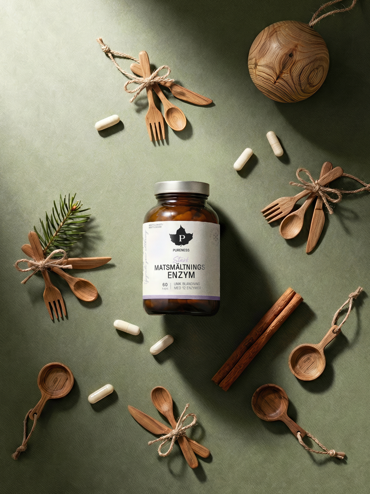 - Pureness Mjölksyrebakterier: Ger magen stöd efter festmåltiderna.