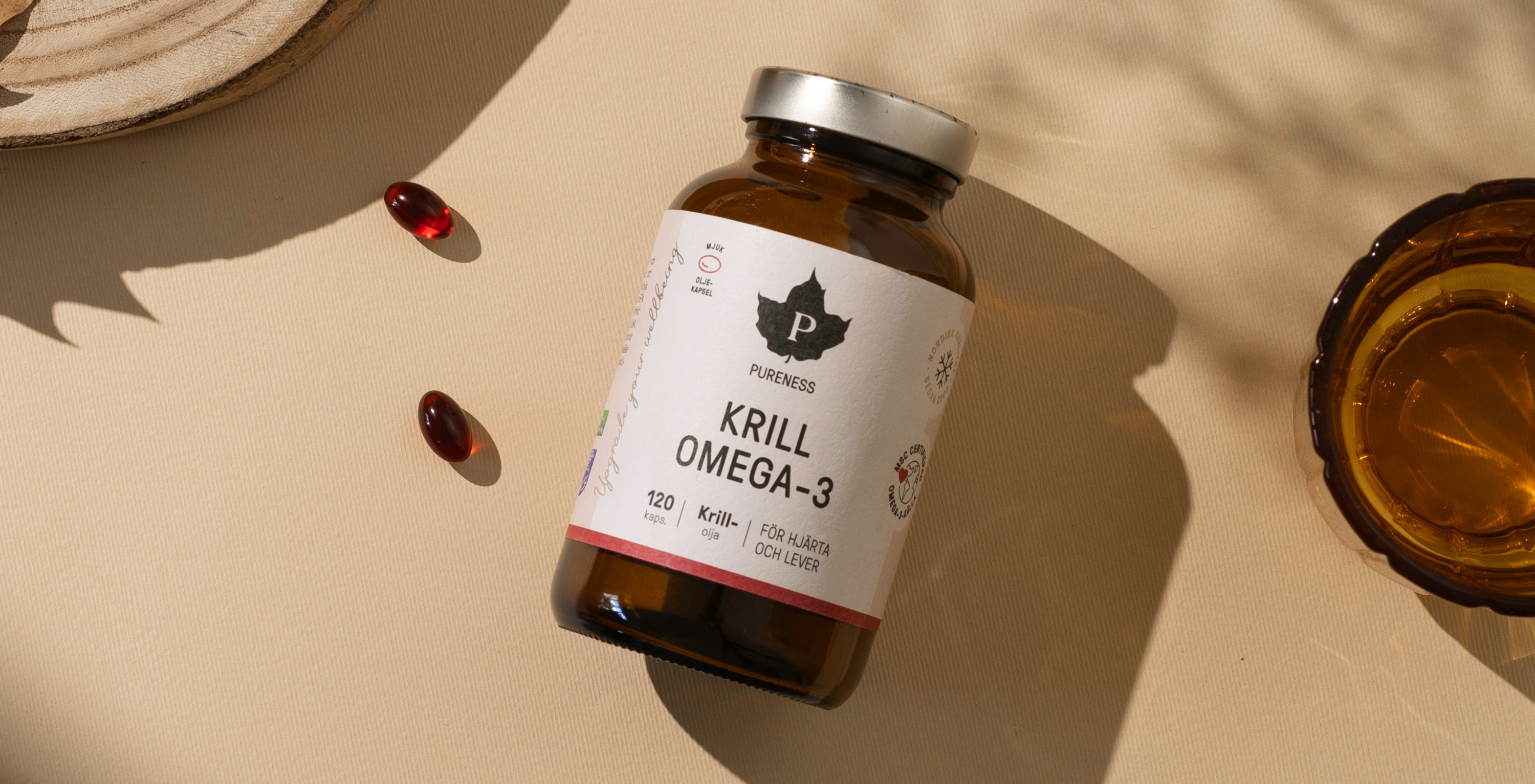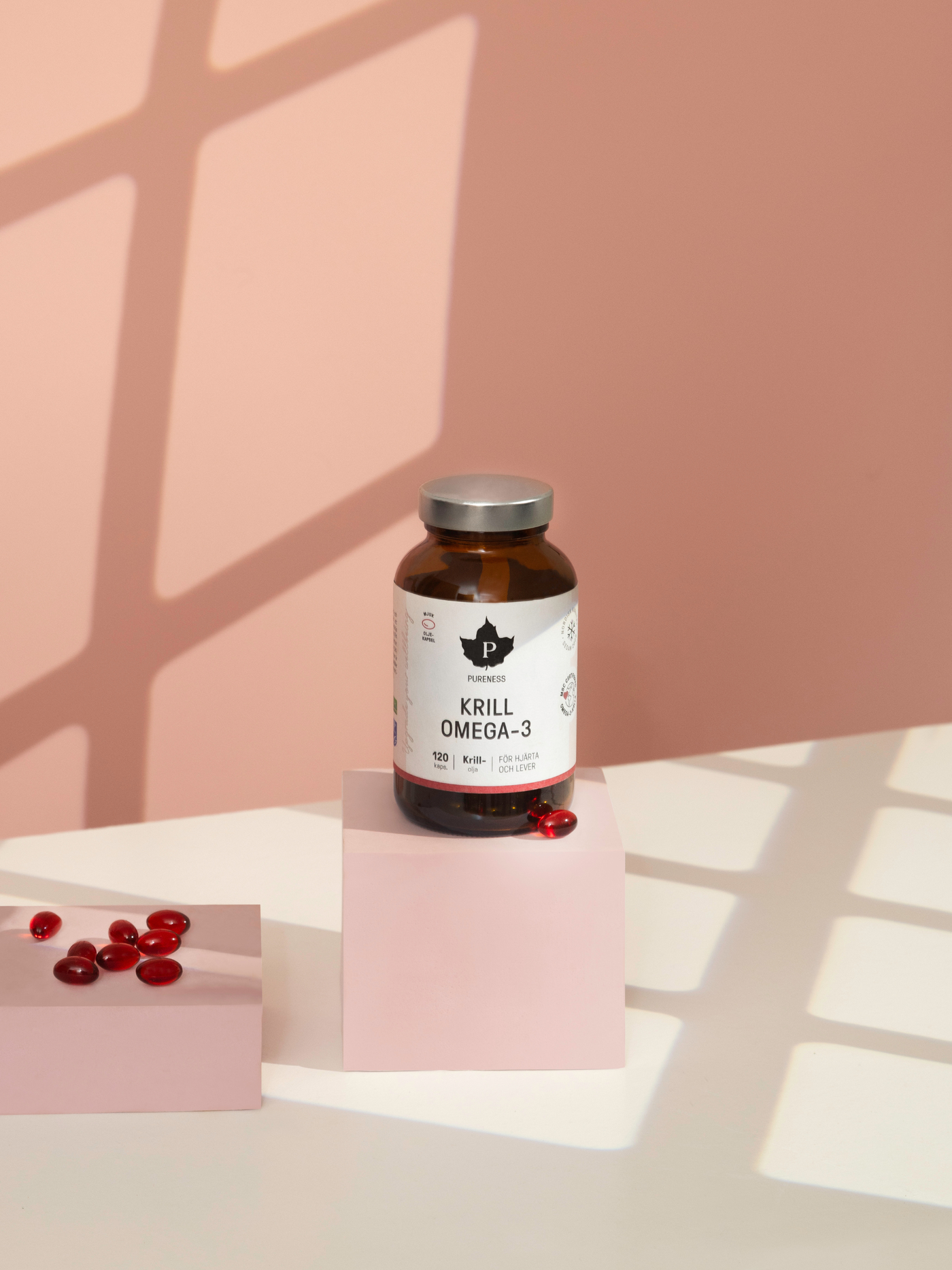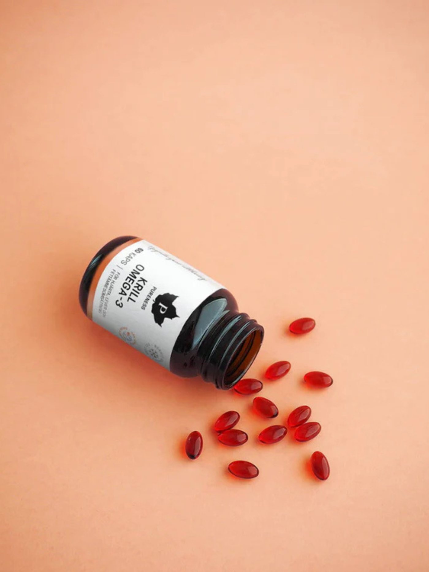 För oss är det alltid viktigt med rena ingredienser. Pureness Krill Omega-3 innehåller krillolja. Oljan är framställd både på ett ekologiskt och etiskt sätt, med 100% spårbarhet. Krillen fångas med en teknik som heter Ecoharvest-metoden i närheten av Antarktis. Fångstområdet anses ha världens renaste havsvatten, eftersom det ligger långt bort från fabriker och föroreningar.
